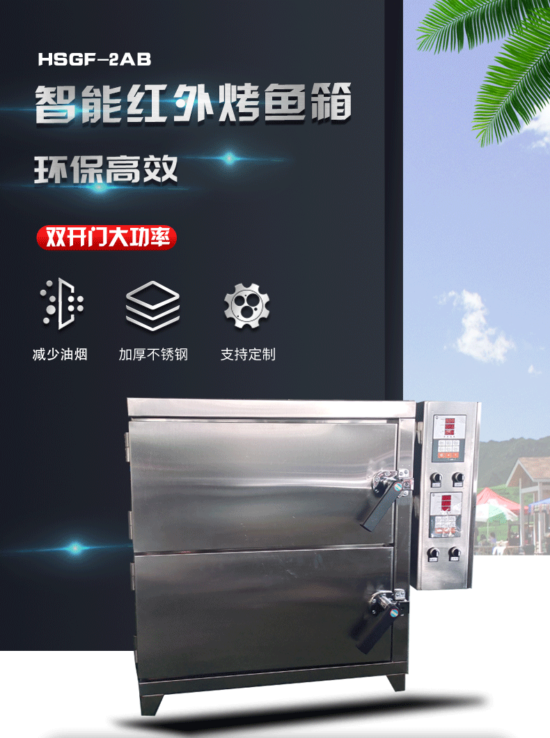 雙層雙盤烤魚箱,適合一天出魚量在四五十條魚左右的烤魚店。我公司是河南省生產智能紅外烤魚箱的廠家,該烤魚箱是國家專利審核過的產品,請大家放心訂購。此款烤魚箱不僅銷往本省區(qū)域,而且遠銷上海 北京 廣州 深圳 天津 重慶 蘇州 武漢 成都 杭州 南京 青島 長沙 無錫 佛山 寧波 大連 鄭州 沈陽 煙臺 濟南 東莞 泉州 南通 唐山 鎮(zhèn)江 滄州 西安 福州 長春 合肥 濰坊 徐州 常州 溫州 紹興 濟寧 淄博 鹽城 揚州 昆明 南昌 臨沂 東營 臺州 泰州 嘉興 洛陽 廈門 金華 南寧 襄陽 宜昌 邯鄲 泰安 榆林 惠州 威海 中山 保定 吉林 南陽 德州 岳陽 太原 聊城 常德 漳州 貴陽 淮安 衡陽 茂名 濱州 蕪湖 湛江 菏澤 柳州 株洲 許昌 江門 咸陽 周口 廊坊 湖州 宿遷等城市。恒晟牌烤魚箱典型客戶:小城漁家,魚貴人,魚酷,魚派,食客沸騰,巫山烤魚,烤功夫,諸葛烤魚,三國烤魚,萬州烤魚,重慶烤魚,七公江湖燒烤等。